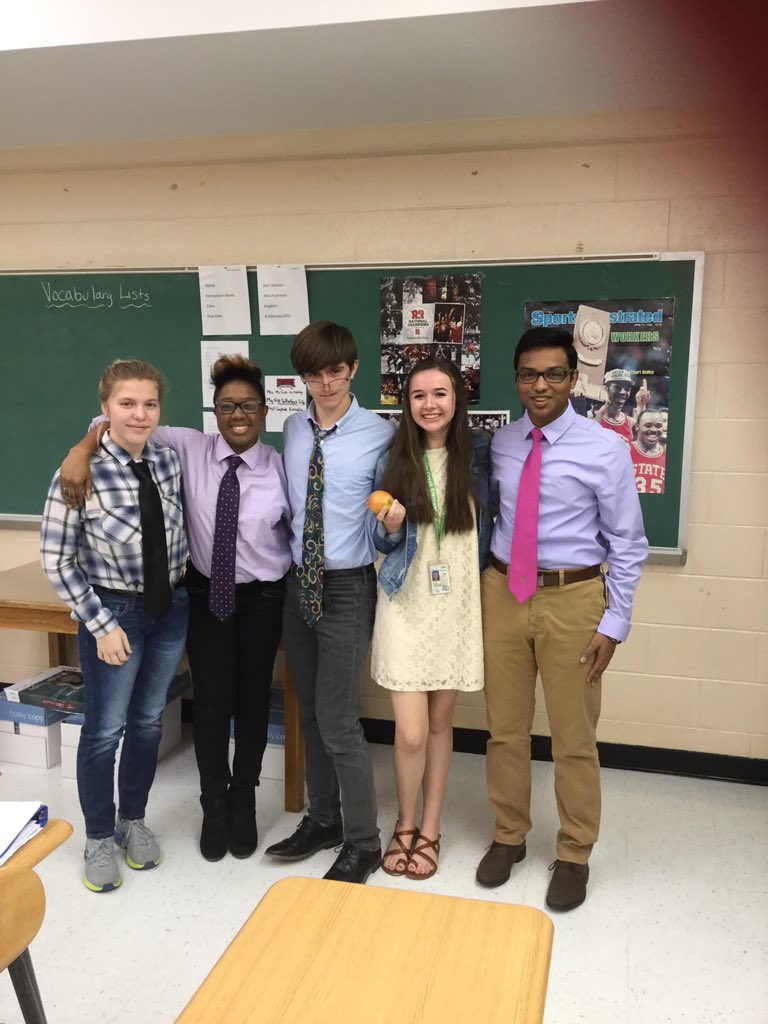 Merryn Brown; Tyler Robinson; DJ Lah; Ashley McDaniel; Sam Joseph dressed as teachers