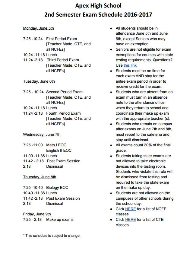 The 2nd Semester Exam Schedule is now available!