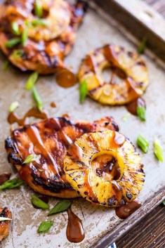 Top your meat with the sauce, a pineapple ring, some chopped scallions, and enjoy! This dish would pair well with rice and grilled vegetables if you would like to make it into a full dinner.
