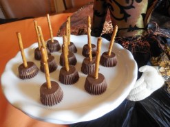 Simply remove your Reese’s cups from their wrappers, put them upside down, and stick a pretzel in the top. That is all it takes to make a cute witch broom and they are sure to be crowd pleasers.