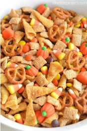 These sweet and salty bites are absolutely adorable and are relatively simple to put together. If you are looking for something more fall oriented than spooky Halloween, these are the treats for you.